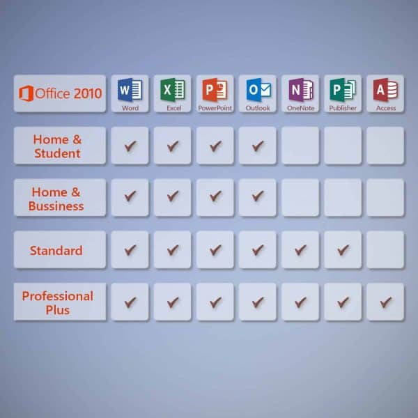 Microsoft Office 2010 Professional Plus beinhaltet diese Anwendungen: